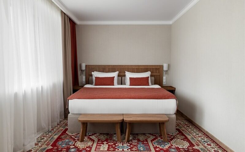 Двухкомнатный номер площадью 30–32 кв. м рассчитан на размещение до четырёх человек. В номере создана атмосфера домашнего уюта, сочетающаяся с функциональностью и комфортом премиального уровня.